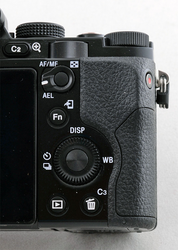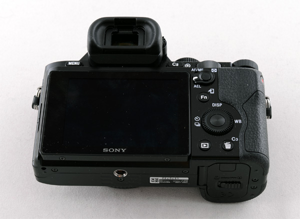 Вид сзади с установленным наглазником видоискателя. Тут больше напоминает серию RX - по управляющим элементам.