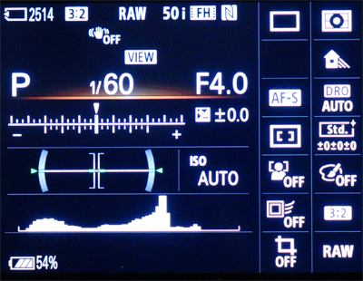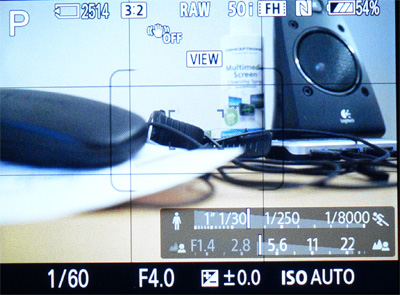 Видоискатель, как это обычно у Sony, цифровой, а от этого все плюсы и минусы: плюсы в том, что туда выводится любая информация, а минусы в том, что цифровой видоискатель не так объективно отображает окружающий мир, как оптический. Но тут, конечно, кому что нравится: окружающий мир без подробной информации о съемке или окружающий мир со всеми данными. Лично я - фанат оптических видоискателей (встроенных в зеркалку и не купленных для RX1, что я до сих пор себе простить не могу), но должен сказать, что наличие цифрового видоискателя для данного аппарата - это уже очень хорошо.