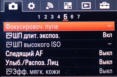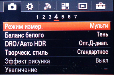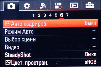 А теперь давайте посмотрим возможности настройки камеры с помощью меню, которое здесь, слава богу, сделано в стиле моделей RX, а не в стиле NEX.