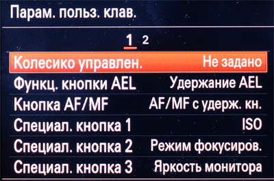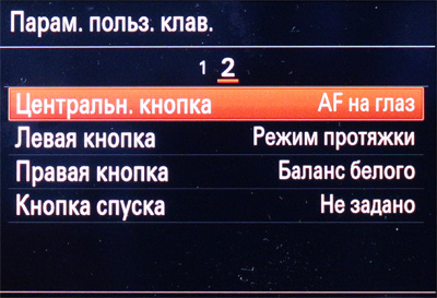 Параметры пользовательской клавиатуры - это гибкие настройки работы вертикального колесика управления. Впрочем, там лучше ничего не задавать, потому что это колесико может случайно поворачиваться при трении об одежду, когда фотоаппарат висит на шее.