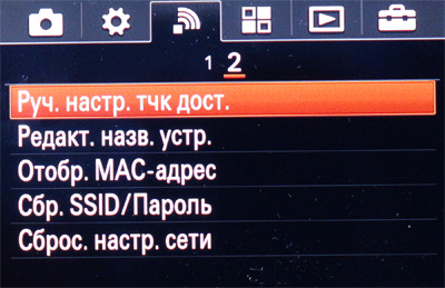 Настройки параметров сети, создаваемой фотоаппаратом.