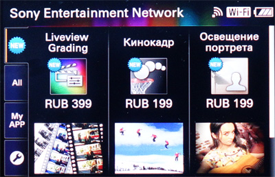 Как и в серии NEX, данная камера умеет устанавливать различные приложения, значительно расширяющие функциональность камеры.
