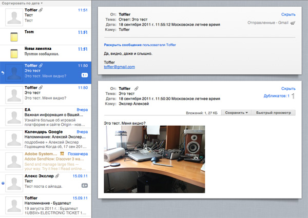 При просмотре писем их можно организовывать по разговорам (цепочкам ответов). Причем визуальное представление разговоров - очень наглядное. Если писем в разговоре много, они просто будут скроллироваться по вертикали.
