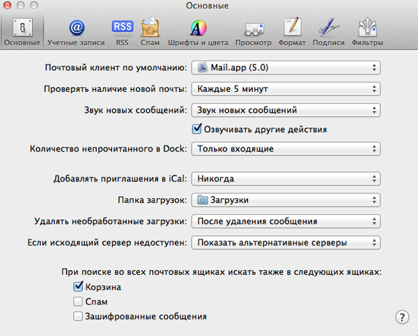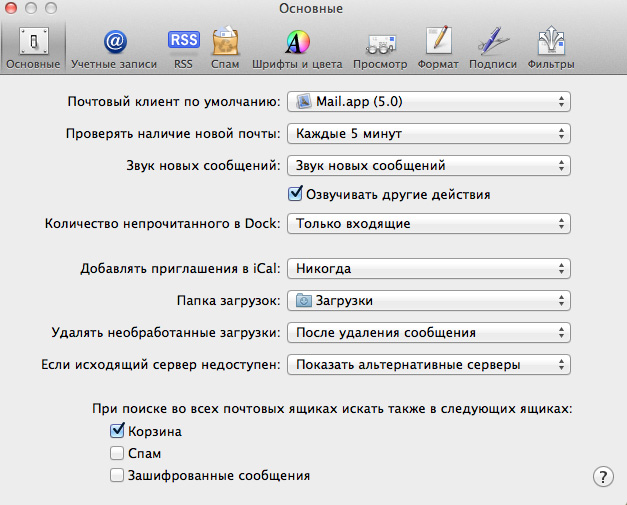 Настройки у почты - достаточно продвинутые. Тут уже не скажешь, что бедненько, но чисто...