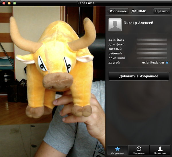 Теперь здесь, как и в iOS, включена программа FaceTime - видеообщение через Wi-Fi с другими пользователями, имеющими компьютер с OS X Lion или устройство с iOS: айфон, айпод тач или айпэд.