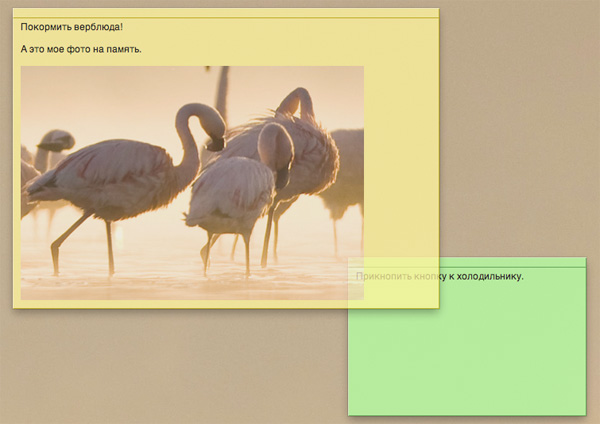 Простенькая, но удобная программа для создания экранных стикеров - листочков с заметками. В отличие от заметок MS Office, здесь намного шире возможности оформления текста, а также можно прикладывать изображения, в том числе - с внешних камер или захваченные с экрана. Определенные заметки можно делать полупрозрачными.
