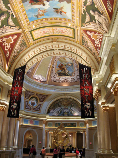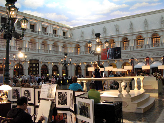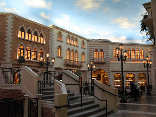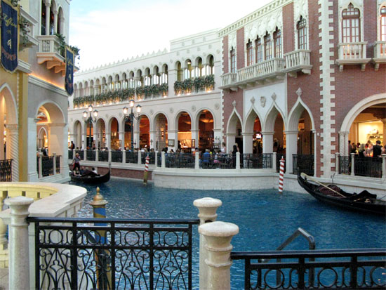 Также Venetian известен свой магазинной галереей, которая расположена внутри отеля, но выглядит, как целый город: там есть улицы, магазины, кафе, каналы, проплывают гондолы, проходят концерты, периодически гремит гром и идет дождь (в строго отведенных местах) - словом, впечатление это все производит просто невероятное.