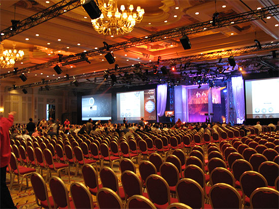 Сама же конференция проходила на трех этажах величественного и шикарного конгресс-центра Venetian: общие мероприятия проходили в огромном зале Palazzo Ballroom, сессии проводились в небольших залах четвертого и пятого этажей.