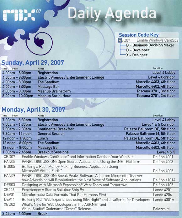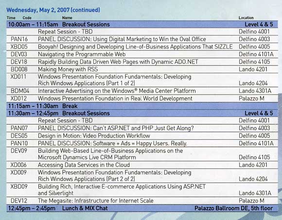 Вот, пожалуй, и все, что я в общем хотел рассказать о том, как проводилась MIX'2007. В следующих выпусках поговорим о конкретных продуктах и методиках, о которых шла речь на сессиях, - это как раз самое интересное. Потому что залы, ковры, магазины, еда, pussycat dolls, каналы и мосты - это все-таки не то, ради чего туда приехали порядка двух тысяч человек. Они приехали увидеть всякие софтверные инновации - они их увидели.