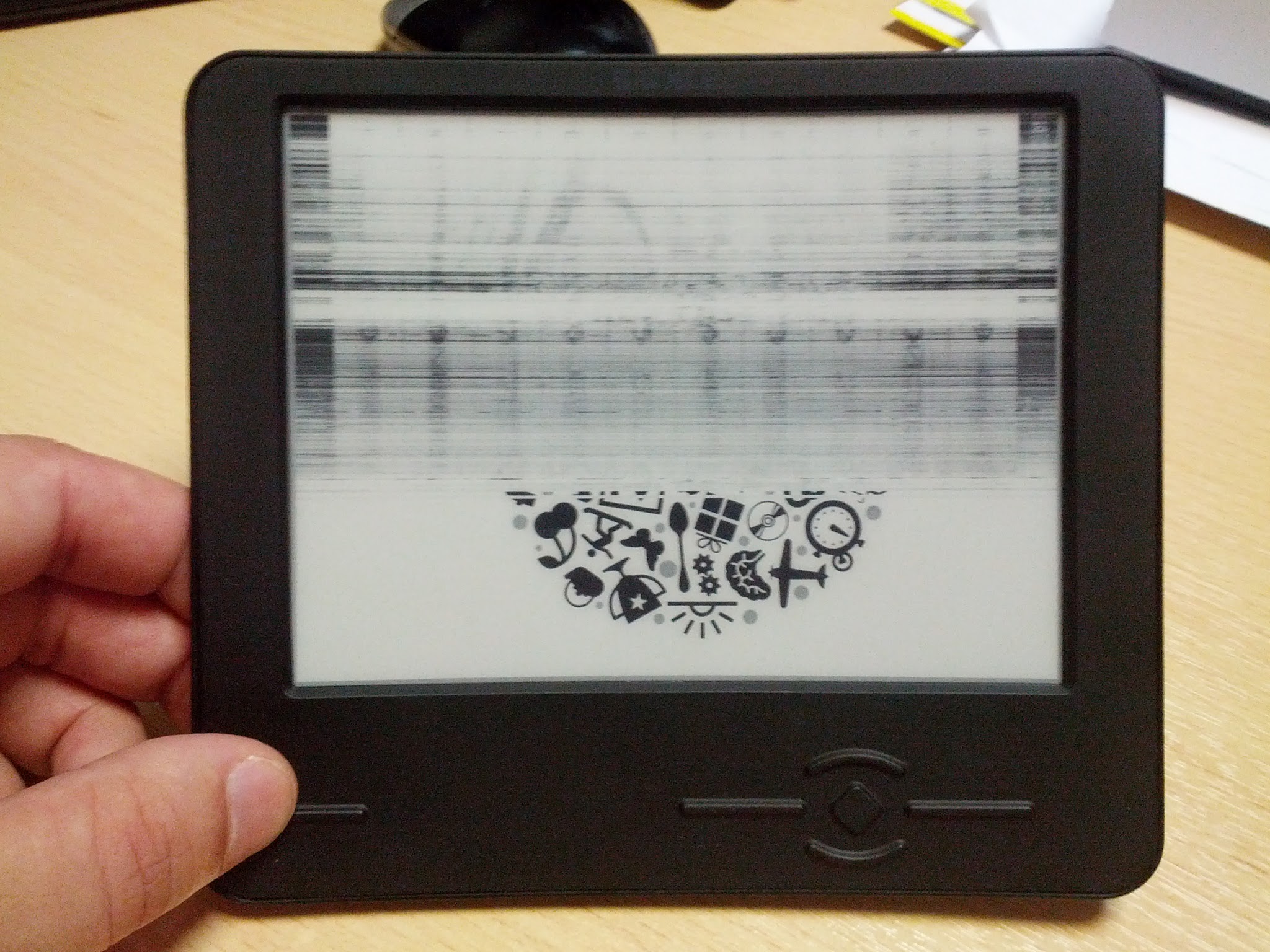 Подчеркиваю, это именно тот ридер, над которым я издевался в предыдущих роликах. На четвертом броске на пол с высоты полутора метров у него перестали нажиматься кнопки и отказал сенсорный слой, на пятом броске по экрану прошла даже не трещина, как мне показалось вначале, а просто темная тонкая полоса из чернил, также внизу возникли какие-то темные помехи - вот на данном фото это хорошо видно.