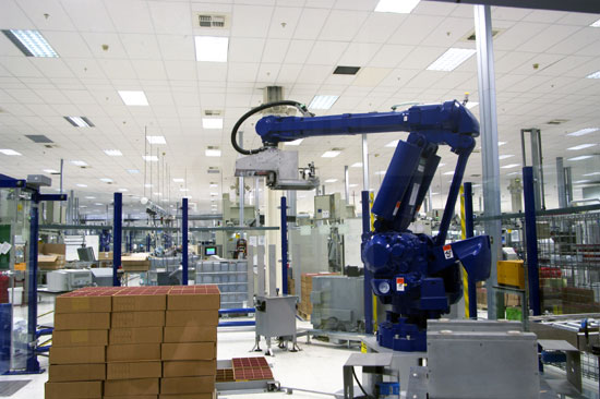 Упаковываются картриджи также автоматически - с помощью вот такого человекоподобного робота.