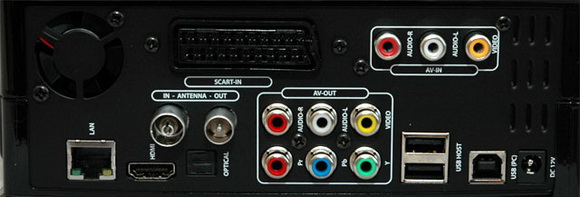 С портами тут все хорошо: композитный видеовход, вход SCART, видеовыход - композитный, компонентный, HDMI 1.3, аналоговый стереовыход, цифровой оптический выход. Также есть LAN в 100 мегабит и два USB. (USB тут размещены только на задней части, что не слишком удобно.) Плюс USB (PC) для подключения к компьютеру.