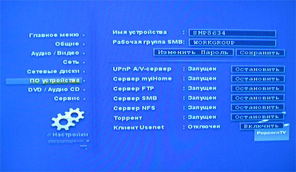 Воспроизведение медиаданных из локальной сети. Чтобы Popcorn TV мог получать доступ к папкам локальной сети, его нужно не только подключить к этой сети, но и установить на соответствующем компьютере специальную программу myiHome. Wi-Fi-адаптера в устройстве нет, однако для беспроводной сети вы можете использовать USB-Wi-Fi-адаптеры на определенном чипсете (замечу, довольно редком).
