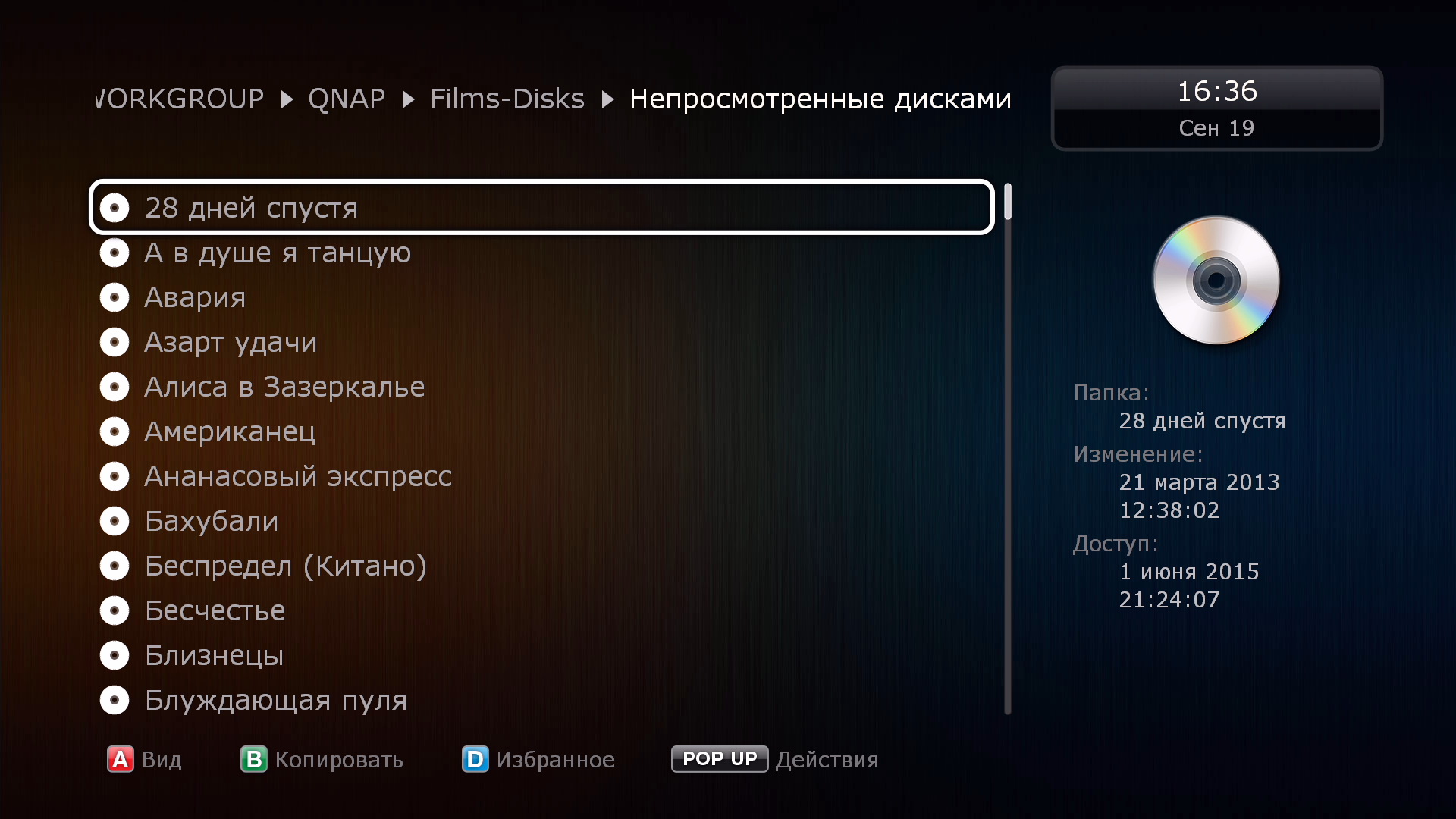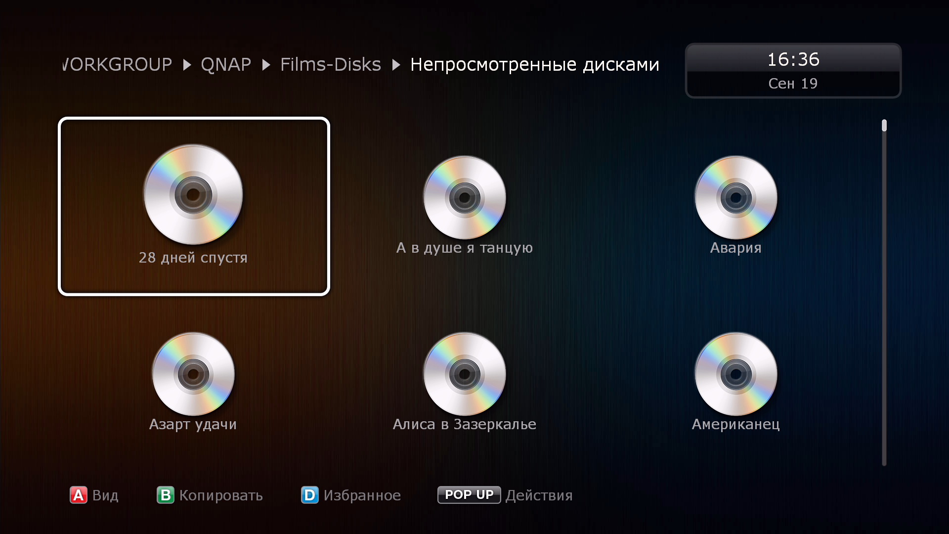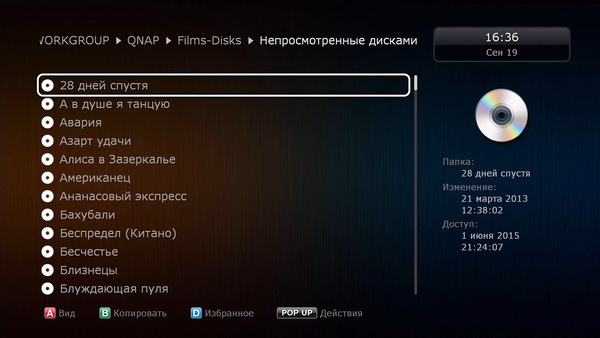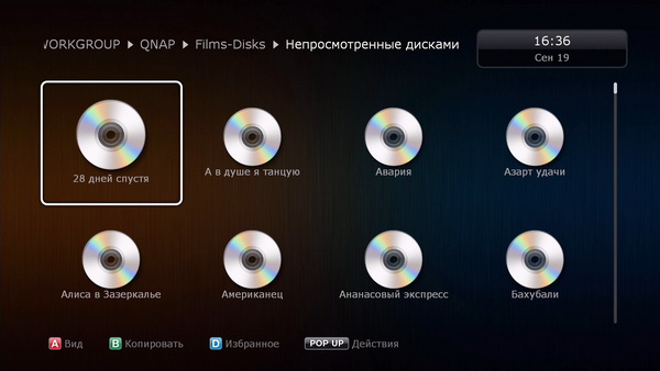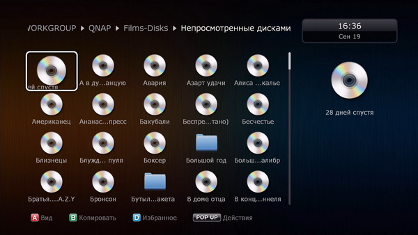 Сетевая папка с фильмами. Вид отображения можно менять.