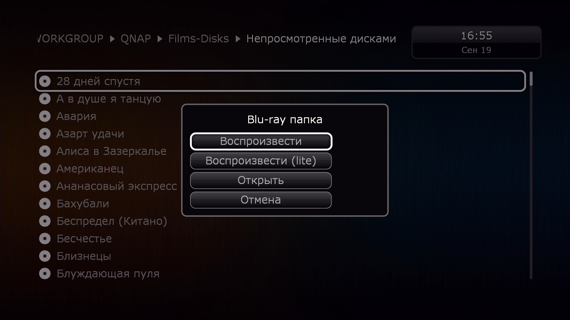 Для образов Blu-ray здесь есть два варианта: воспроизвести как диск Blu-ray, показав меню диска, или же показать список файлов (основной файл фильма показывается вверху списка) и запустить просмотр конкретного файла.