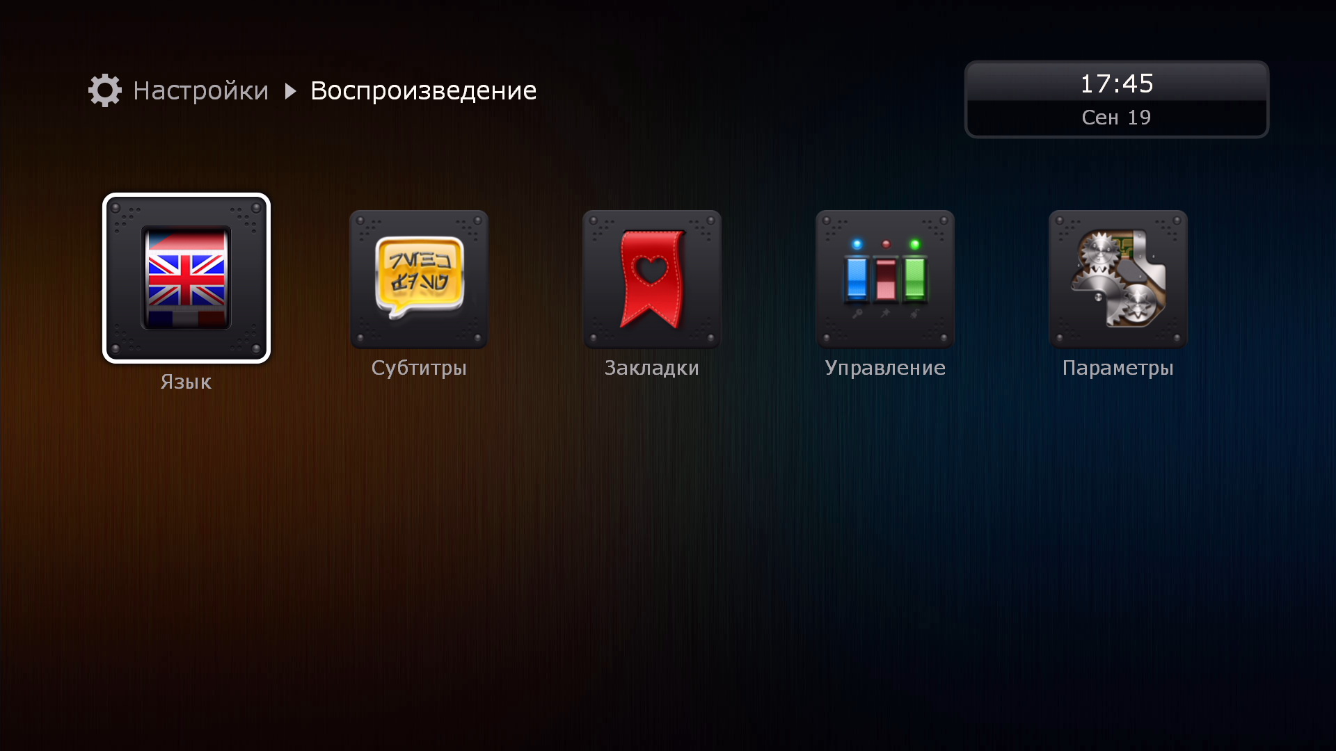 2. Предпочтительный язык и субтитры задаются в установках, меняются без остановки воспроизведения
