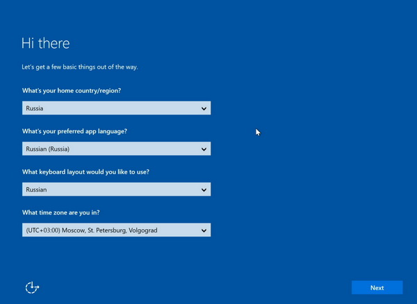 При первом старте производится настройка устройства. Там надо выбрать страну, регион, временную зону. (Далее все уменьшенные скриншоты - кликабельны.)