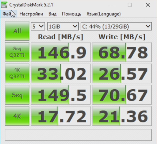 Измеряем скорость встроенной памяти. Не слишком быстро, но для обычных приложений будет вполне достаточно.