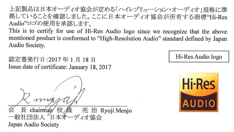Поставляется в такой минималистичной коробочке с названием фирмы и модели, также с наклейкой от японского аудиосообщества Hi-Res Audio.