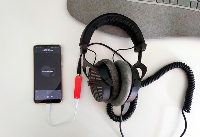 У меня есть многофункциональное устройство Sound Blaster E5, которое в том числе может служить и в качестве ЦАП с усилителем, однако оно довольно большое (размером с толстую пачку сигарет), требует зарядки, потому что у него свой аккумулятор и свое питание, ну и если с компьютером оно работает без сучка и задоринки, то при сопряжении со смартфоном/планшетом все время приходится проделывать какие-то танцы с бубном, и это сильно раздражало. Кроме того, использовать со смартфоном/планшетом такую здоровую бандуру просто неудобно!