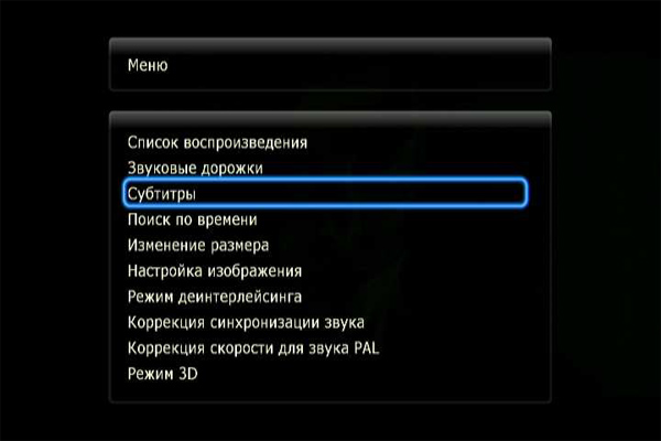 Выбор субтитров.