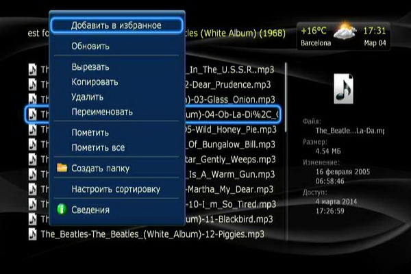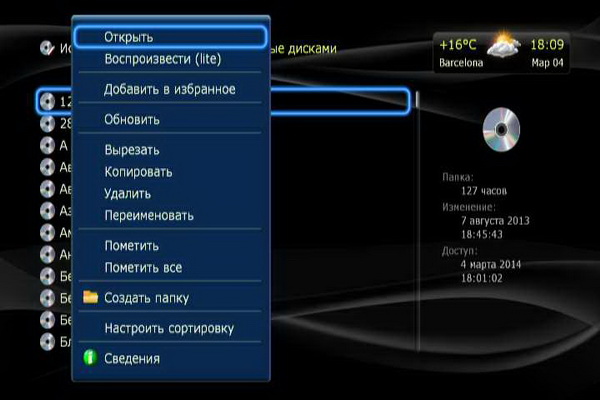 На списке медиафайлов доступно меню файлового менеджера - вполне продвинутое.