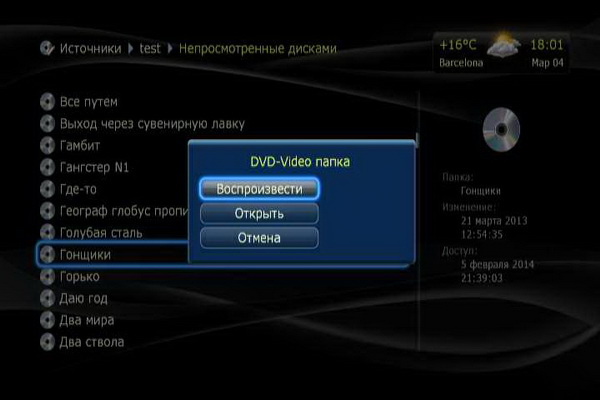 Меню папки DVD. В принципе, очень похожее меню выдается всех остальных видеоданных: Blu-ray, видеотреки различных кодеков-контейнеров.