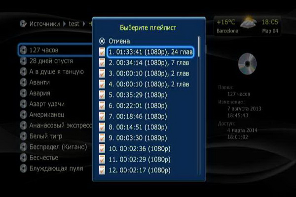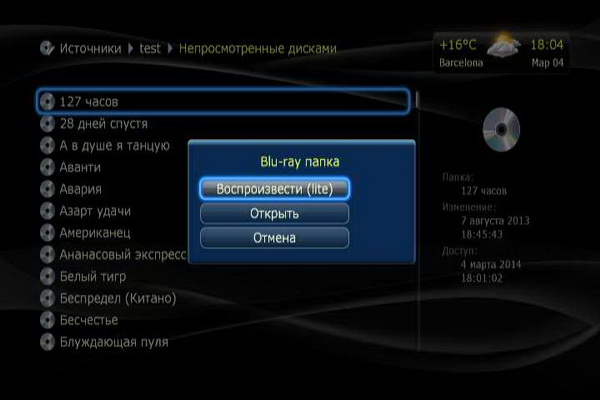 Папка Blu-ray воспроизводится только в режиме Lite, то есть без меню диска: вам предлагается список файлов структуры Blu-ray и требуется выбрать нужный.