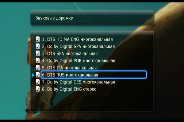 Выбор звуковой дорожки.