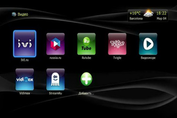 Медиаплеер предоставляет доступ к различным сетевым сервисам.