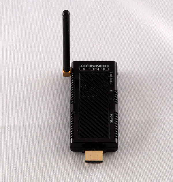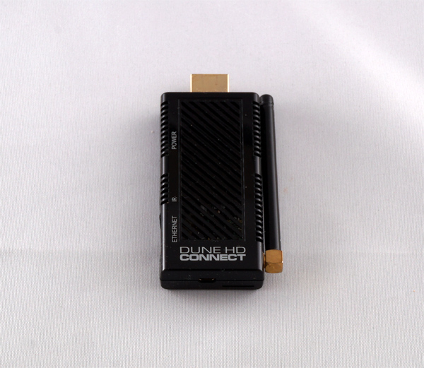 По внешнему виду Dune HD Connect действительно напоминает флешку. Только у него там не USB-коннектор, а HDMI. И сбоку расположена небольшая антенна Wi-Fi.