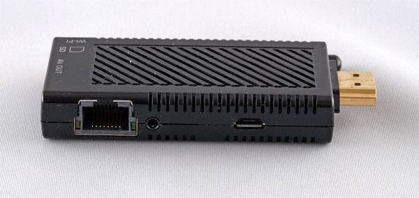 На правой боковой грани - порт Ethernet, выход для внешнего ИК-приемника (без него никак не обойтись) и выход microUSB, который одновременно служит как для питания, так и для подключения внешних USB-накопителей (универсальный кабель USB-microUSB также имеет два дополнительных хвоста - для подключения USB-устройств и для подключения к USB-порту, чтобы запитывать плеер).