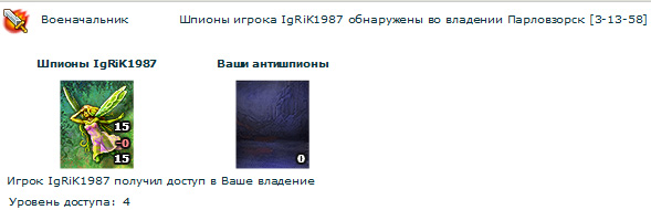 Шпионаж - позволяет посмотреть владения противника и быть в курсе всего, что у него происходит. Для качественного шпионажа у вас должны быть натренированы шпионы плюс они должны иметь достаточный радиус действия. Противостоять шпионажу можно с помощью антишпионов - они вступят в бой со шпионами и, да хранит их Дракон, победят. Или проиграют.