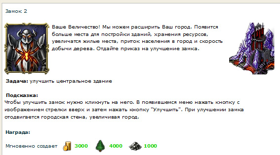 Поскольку совершенно непонятно, с чего вообще начинать (я понимаю, что сперва надо все тротуары замостить плиткой, но пока не ясно, где тут вообще тротуары), в игре предлагают щелкнуть на рыцаря-советника, который будет давать всякие задания.