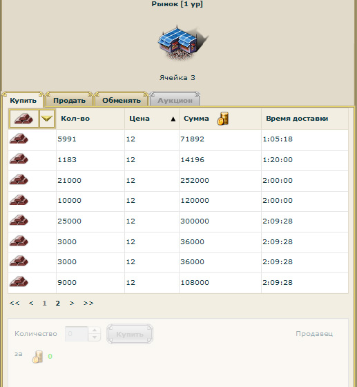 Также при необходимости можно что-нибудь купить из любых ресурсов - вот, например, нынешнее состояние биржи с предложениями по железу.