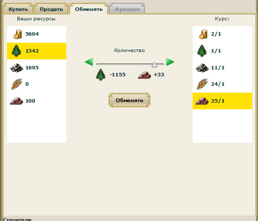Еще один вариант - прямой обмен. Вот, например, меняем древесину на железо.