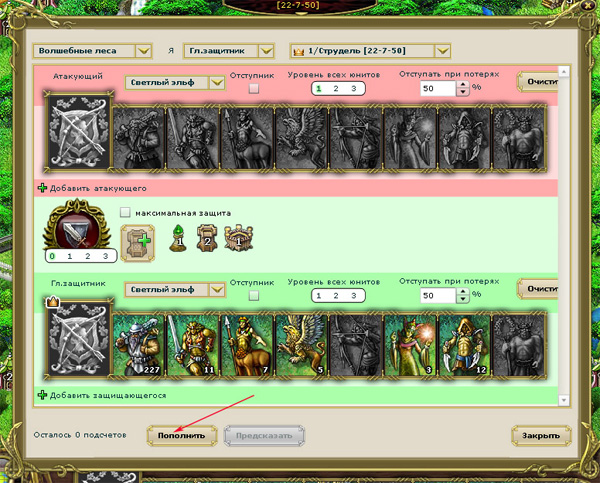 Ну, а теперь о самом главном - о БОЕ. Без хорошего боя нет хорошей MMOG. Тут в бою действуют три параметра - атака, здоровье, защита. Атака воина уменьшает здоровье противника. Защита противника уменьшает повреждения от атаки. Бои проходят по раундам, победителем считается тот, кто не достиг лимита потерь. Алгоритм расчета урона при этом довольно сложен, но если вы не хотите считать его вручную (там вообще зашибешься считать, сразу вам говорю), проще воспользоваться специальным калькулятором - штука, правда, платная, но зато очень полезная.
