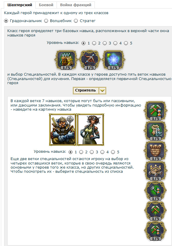 В игре есть еще такое важное понятие, как Герой. Каждый герой имеет определенный класс, специализацию и уровень навыков.