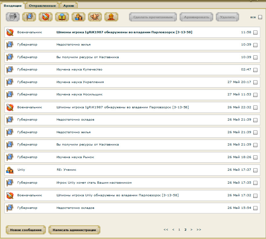 Кстати, важный момент - почта. Туда обязательно нужно заглядывать (на пиктограмме появляется цифра непрочитанных писем), потому что старина Губернатор, кроме отчетов из серии "Я знаю, что вы сделали прошлым летом", может сообщать и важные сведения вроде того, что население негодуэ, потому что ему не хватает жилых помещений, - нужно срочно строить, а то ведь сбегут, негодяи, к моим врагам.