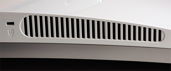 Два десятиваттных динамика также расположены на нижнем торце. Рядом с левым динамиком размещен кенсингтонский замок.