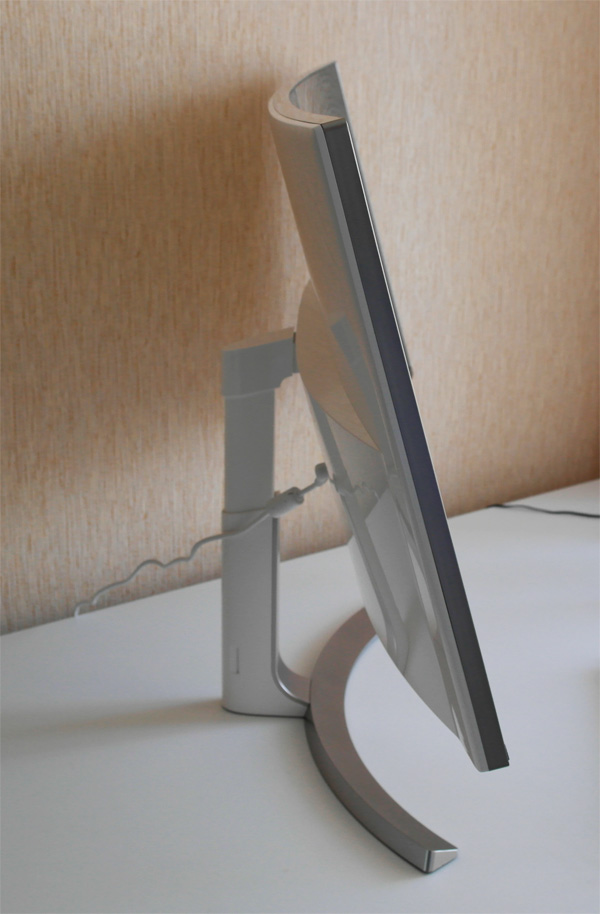 Отмечу, что качество материалов и сборки - на очень высоком уровне. Задняя крышка - белый глянцевый пластик, на котором не особенно заметны следы прикосновений: не то что, замечу, в случае черного пластика (у моего монитора - как раз черный).
