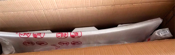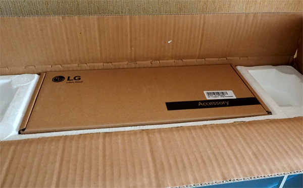 Крупные элементы подставки и кабель питания находятся в углублениях пенопластовой упаковки, более мелкие комплектующие находятся в отдельной коробке.