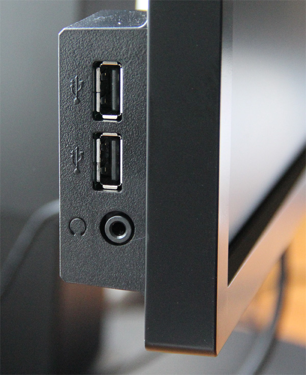 К бытовым удобствам относится то, что монитор одновременно выступает в качестве USB-хаба на четыре выхода, также снабжен пристойно звучащими стереодинамиками (в качестве обычного звука для просмотра, например, роликов с Youtube или негромкого звукового сопровождения программ и игрушек - самое оно), ну и еще выходом для наушников.