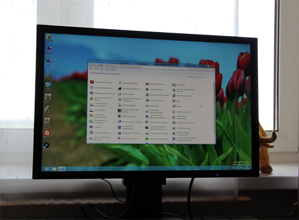 Углы обзора, как это вполне ожидаемо для TN-матрицы, не супер. По вертикали вверх - начинает слегка падать контрастность, по вертикали вниз - появляется белесость. По горизонтали в обе стороны - начинает падать контрастность. Однако такие вещи создают проблемы в планшетах, а в офисном или домашнем мониторе - в общем, без проблем: в пределах поворота экрана на подставке изображение совершенно нормальное. А горизонтальных углов спокойно хватает, чтобы на мониторе одновременно смотрели кино три человека, сидящие рядом.