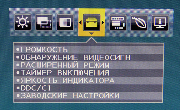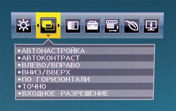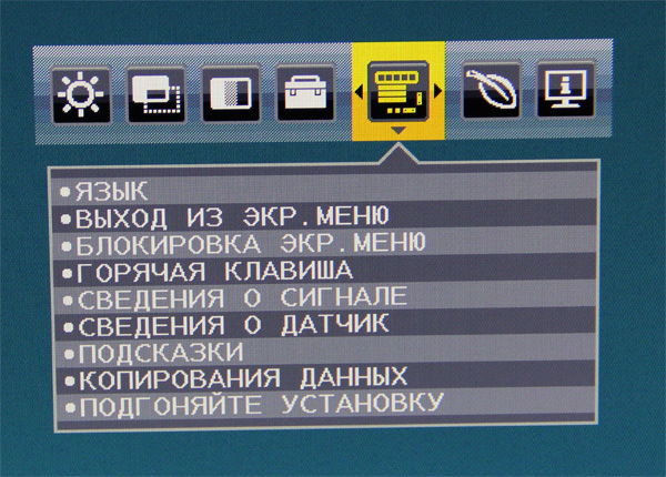 Ну и теперь давайте посмотрим, какое тут предлагается экранное меню. Оно довольно продвинутое и снабжено кучей всяких подпунктов.
