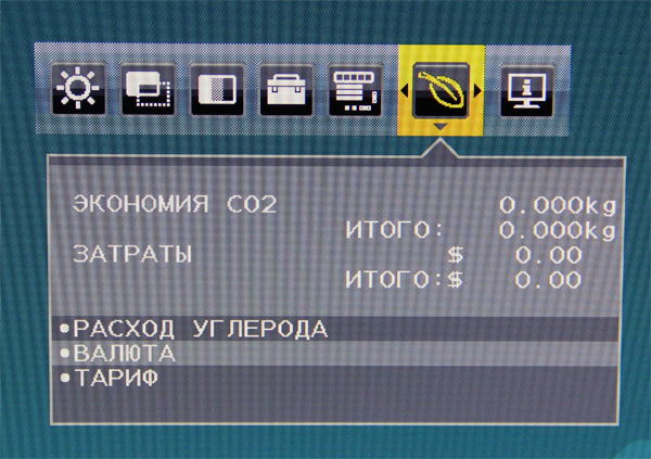 Монитор поддерживает ECO-режим работы, при котором производится оптимальная настройка работы устройства в целях сохранения окружающей среды (уменьшения углеродного следа, датчик которого тут также присутствует).