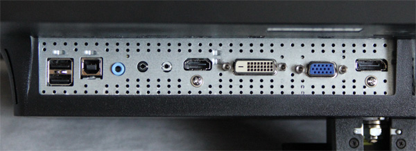 Порты здесь расположены в двух местах. Основной набор - на задней крышке. Здесь два выхода USB 2.0, вход USB, стереоаудио, In/Out выходы системы ControlSync, HDMI, DVI, VGA (D-Sub), DisplayPort.