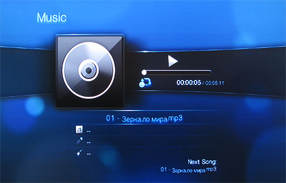 Опознает подключенный накопитель WD TV за пару минут, однако далее есть одна особенность: плеер начинает сканировать весь накопитель и индексировать имена файлов - для более удобного доступа в дальнейшем. (Соответствующая база создается в подпапке wd_tv на самом накопителе.) С одной стороны, это вроде как полезно, но с другой - если вы подключаете, например, терабайтный диск, под завязку забитый музыкой, плеер может его сканировать весьма продолжительное время - 10-20 минут. Это, конечно, не очень удобно.