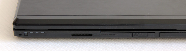 Передний торец - индикаторы, универсальный кардридер, замок съемного тачпэда.