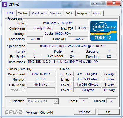 Процессор: Intel Core i7-2630QM (2 ГГц, 6 Мб)